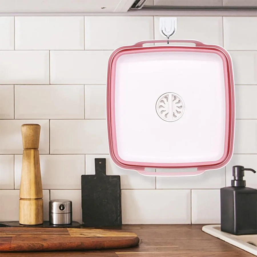 9 Liter Collapsible Plastic Vegetable Wash Basin with Drain Plug for Dish Storage, Vegetable and Fruit Washing, Chill Bucket