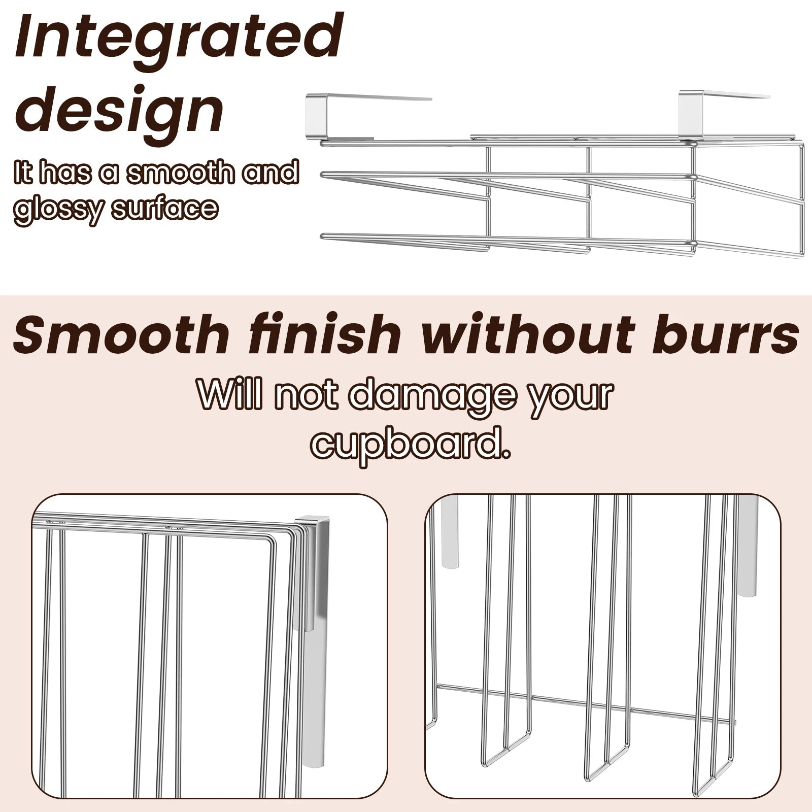 [Easy to Install] Our under cabinet cutting board organizer is designed for no punch hanging installation, which can be easily installed without damaging your cabinets. It can be hung horizontally or vertically, you can hang it vertically on the lower side of the cabinet door, easy to use.